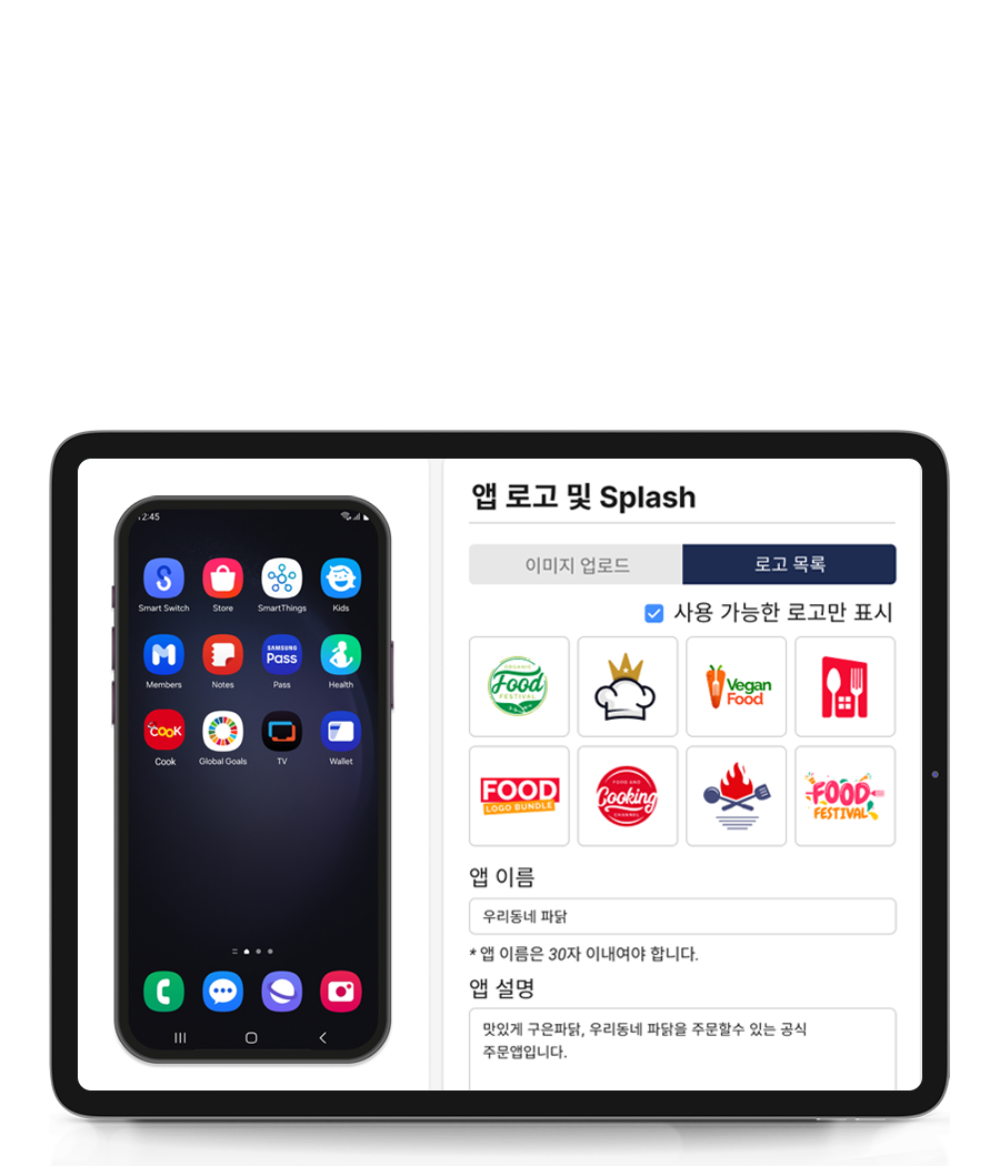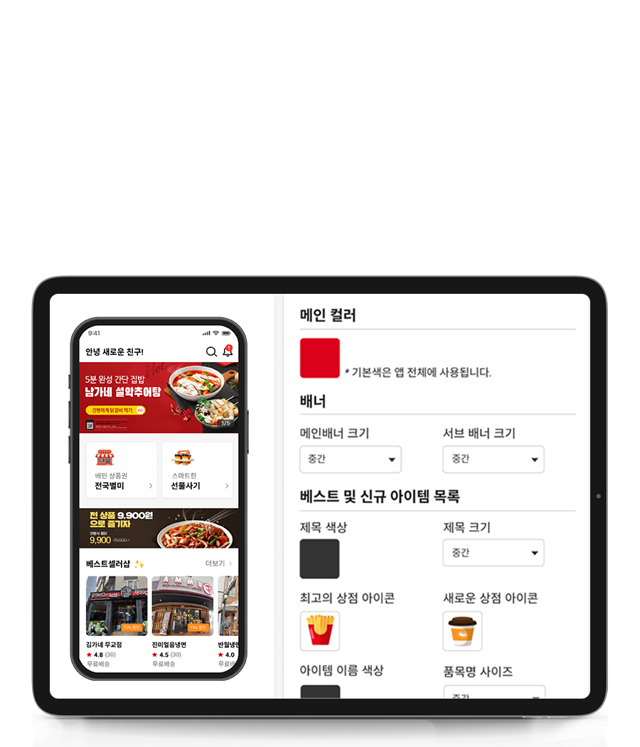 우리매장 고유의 앱 디자인, 색상, 폰트를 선택하고 생성할 수 있습니다