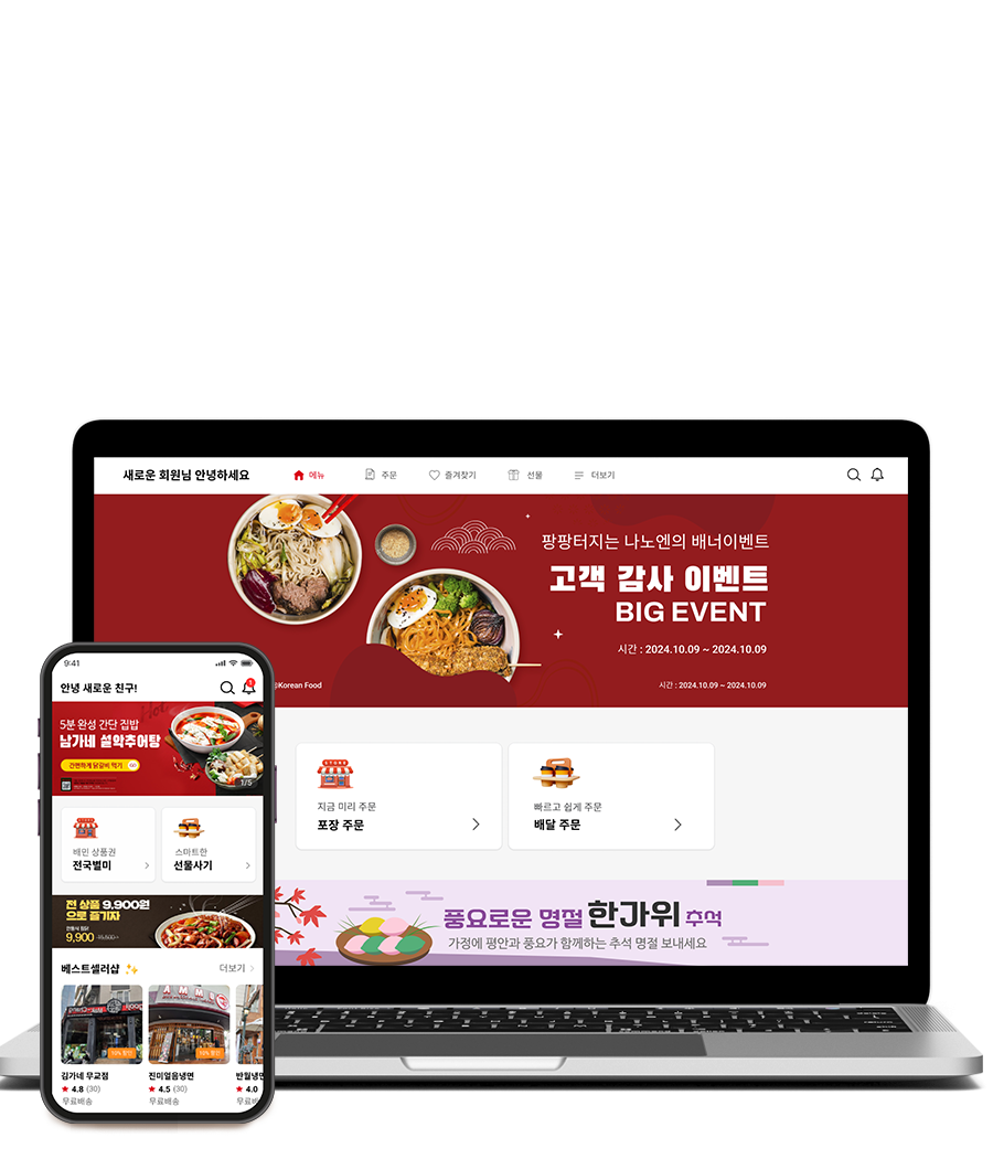우리매장 전용 주문웹이 PC버전과 모바일버전으로 오더프로!